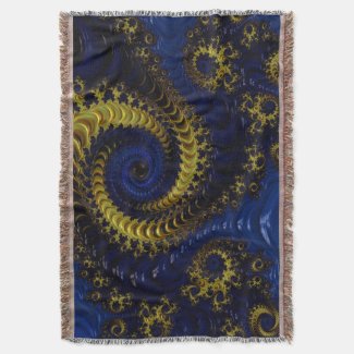 Gorgeous Golden Yellow and Blue Fractal Throw Blanket